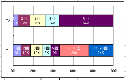 このファイルのシート E3-2 のデータから、以下と同じ100% 積み上げ棒グラフを作成せよ