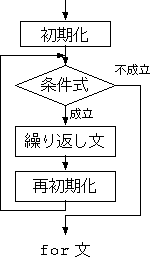 forに突入した段階で、「初期化」文を実行し、繰り返し文を実行する。