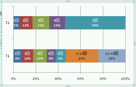 このファイルのシート E3-2 のデータから、以下と同じ100% 積み上げ棒グラフを作成せよ